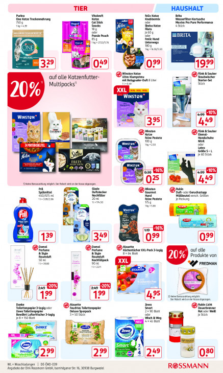 Bitte beachten Sie, dass dieser Text automatisch generiert wird und möglicherweise Fehler enthältTIER HAUSHALT Purina Vitakraft Felix Katze Brita One Katze Trockennahrung Katze Knabbermix Wasserfilter-Kartusche 7509 ” Cat Stick oder Maxtra Pro Pure Performance 1ig=40 re Snacks fe Sheba Katze 4 Stück 189 5 Filets Dee À. oder je60g Genel ek ds Poesie Pouch (er oder 8BRIIA 859 Frolic Hund Vito 1ig=2722/576 Unterwegs M Ris 1809 i ne tig =16.50/550 bl A ES = Fr Ne ds ‚Winston Katze Flink & Sauber -— Staubwischer auf alle Katzenfutter- Ultra Klumpstreu mn Starter-Set 112049 mit Babypuder-Duft 8 Liter ak. Stück > XXL % Multipacks” WINSTN y \ = -10% WINS: =. En el en IEN Á DE) u 4.9 D pel ee re -®) GOURMET Winston Flink & Sauber PE Katze Einmal- = ER Feine Pastete Handschuhe au 100 g Nitril A PORTIONSBEUTEL oder Pi QT Latex " ous Größe s-L ei | Br | 19 =250 Ts u je 60 Stück fete, Cas ei [ T Per ae Ee WINS >} ET | ER -16% -10% CRE 25 mei 4.9 9) eine Borauszohlung möglich. Der Rabatt wirdan der Kasse abgezogen. En Prik Glade Winston Rubin Duftstecker Spülmittel Gourmet Duft- oder Geruchsstopp 450/675 ml ide Nachfüller Hund Müllbeutel versch. Größen 11=309/206 20 ml Feine Pastete Je Packung 11207450 1759 Ang =5.66 U an) LOC BYE (3 ) ii GE pr ej Fa 16% PD 99 Domol Domol Alouette Perfume Perfume Küchentücher XXL-Pack 3-Lagig auf alle & Style & Style 8 x 64 Blatt Raumduft Raumduft Produkte von 50 ml 1123980 LÉ 90 mL Nachfüllpack XXL 1t=22n : 4 FREDMAN 3 alouette, 34 1% FR É- E BA “ À 249 ej a = 5 A 99 2) Keine parte möglich. El 19 Der Rabatt wird an der Kasseohgezagen. Danke Alouette Zewa Rubin Licht Toilettenpapier 3-lagig oder Feuchtes Toilettenpapier Smart Dauerbrenner Zewa Toilettenpapier Deluxe Sparpack 2x 90 Blatt Rot oder Weiß Bewährt Lufterfrischer 3-lagig 3x 50 Stück oder je Stück Wisch & Weg Le 8 x 150 Blott In NEU 4 «45 Batt Ze NT D a in ME. ae rm Wa + ee Smart ë, \ à s Lier WL=Woschlodungen | DE-ÖKO-039 ‚Angebote der Dirk Rossmann GmbH, Isernhägener Str. 16, 30938 Burgwedel R@SSMANN