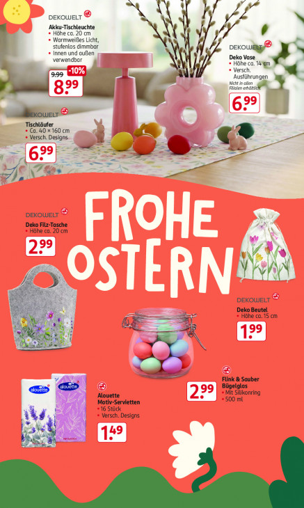 Bitte beachten Sie, dass dieser Text automatisch generiert wird und möglicherweise Fehler enthält4 ye DEKOWELT ie Akku-Tischleuchte Hôhe ca. 20 cm ” Warmweißes Licht, "1 stufenlos dimmbar DEKOWERI Innen und auBen Deko Vase verwendbar Höhe ca. 14 Versch. Ausführungen er Nicht in allen Filialen erhättl ” ee 2 N Tischläufer Ca. 40 x 160 cm Versch. Designs. P "a, ® = = 2 N . fl = De | JS A DEKOWELT DN Deko Filz-Tasche Höhe ca. 20 cm | VAN DEKOWELT Deko Beutel Höhe ca. 15 cm 5 % Flink & Sauber CES Bügelglas Alouette Mit Silikonring Motiv-Servietten 500 ml 16 Stück Versch. Designs + A