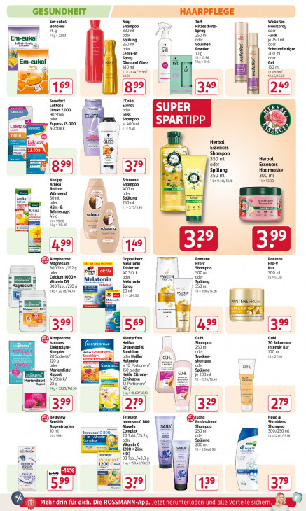 Bitte beachten Sie, dass dieser Text automatisch generiert wird und möglicherweise Fehler enthältGESUNDHEIT HAARPFLEGE Em-eukal Negi Taft Wellafiex Bonbons Shampoo Hitzeschutz- Haarspray 759 330 ml Ÿ Y Spray oder tig=253 oder 250 ml “ak Em-eukal oder = + Hor Spülung je 250 ml te zl 250 ml Er Volumen oder oder Lafl Powder Schaumfestiger N Leave-In 09 == 200 ml Spray 1121286 oder Diamond Glass tig 39 Gel % Em-eukal Honig 180 ml 3 150 ml 4994 112 2724/3536/ 112996/ El 1245/1660 “ie = Ba N | Sanotact L'Oréal Laktase Elvital Direkt 7.000 oder SUPER 6 1 90 Stück fe Gliss 2» oder ELVITZ 2 N E Shampoo SPARTIPP Express 13.000 je 400 ml zien Laktas gs 40 Stück 12948 & bre | u a 7.000 À Laktase GLISS Î Herbal De a EE 13.000 Essences 3 Br Shampoo = De = 350 ml Herbal Nn IV oder Essences Spülung Haarmaske 250 ml 300 ml Kneipp 7 Schauma Eee 11=940/816 1 1330 Arnika Shampoo Fa Roll-on 400 ml Bn + mm Wärmend oder 50 ml & Balkan Amika, Spülung = e Wär oder 250 ml va Kühl-& 112373/536 2% u | Arnika Schmerzgel a B es el 145g "schau: ns 1129980 | rot 1kg= 110.89 © 1 = = 3 Altapharma Doppelherz ze Pantene Pantene Magnesium Melatonin Pro-V Pro-V 300 Tabl./192 9 Tabletten Shampoo Kur oder 40 Stück A 500 mL 300 ml | end Calcium 1000 + atonin oder AUDE oder 1121330 À Vitamin D3 Eee intense Melatonin pülung Magn ium 300 Tabl./270. 9 Spray | 350 ml 20 ml Oes | it=ese/u2s here mes 11228450 rage ze latente Ea Oo | NTE OV Gi 10000 = Be = CH} En ug Altapharma Klosterfrau Guhl Suhl Isotrans Heißer Shampoo 30 Sekunden an el 250 ml Intensiv Kur Elektrolyte- Sanddorn Granatapfel oder 100 ml Kn ne NS: Komplex Sanddorn Heißer Granatapfel- 20 Sachets/ rare oder Heißer / sun. Trocken- 1122790 1209 La Holunder pos a a shampoo 06 oder CT je 10 Portionen/ SR, oder | qu | Mariendistel cs 150 g oder ülung Kapsel NE) Fine Heiße Zitrone- je 200 ml altäfharma® HAE Echinacea El gens Mariendistel 40 Stück/ ALetR16/1645 eel 289 12 Portionen/ Akg= 3325/14250 489 REA K m B 32 w Bestview Tetesept Isana Head & Sensitiv Immusan C 800 Professional Shoulders Abwehr ISANA Shampoo Augentropfen == Shampoo 10 ml Immusan' C 8! Complex en 250 ml 300/250 ml 11259. 20 Tabl/25,2 g Sa oder SAGE FT oder = = Spülung ae Vitamin C 200 ml ET EE 1200 + Zink NA 11=556/695 | tes | Oras oss +D3 Ee tetesept: le Vitamin C) 30 Tabl./43,8 9 sensmv "AUGEN 1200 © or 1kg=15040/8653 [© Troeren LE me = ur = [x 6 x 99 à FE wi VA { £B Mehr drin für dich. Die ROSSMANN-App. Jetzt herunterladen und alle Vorteile sichern.