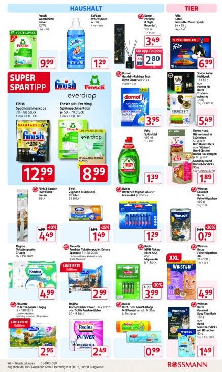 Bitte beachten Sie, dass dieser Text automatisch generiert wird und möglicherweise Fehler enthältHAUSHALT TIER Frosch Softlan Domol Felix Waschmittel Weichspüler Perfume Katze Pulver 45 WL &Style Nassfutter Vorratspack 52WL 1WL=003 Raumduft 24x85 AWLE 019 100 ml Ikg=243 ETES a 30 # D & 24 PORTIONSBEUTEL = Frosch A en | / feu > CES \ En 2 bu: rn o..® IL Domol Sheba Katze E SUPER Geschirr-Reiniger Tabs Ultra Power 40 Stück Multipack 1Stück =010 1x85g oder E Ei SPARTIPP NIS ir rs Frosch Perfect Fit Katze Trocken- dom nahrung everdrop akg ish GEscHiRé 1kg=538/392 Frosch oder Everdrop ET Si Lmaschinencaps Spülmaschinentabs ULTRA POWER 78 - 88 Stück je 50 -70 Stück PERFECT FIT } 1Stück = 017-015 1Stück = 018 - 013 € ee 5 5 D $ d Gr = zo == = Dokas Hund ©; Spülmittel Hühnerbrust in fi ok everdrop 450 ml pos Stückchen ni: 4 112309 50 g oder ) se Bin Hund Fillets 4 ES oder Vitakraft CE og Hund Chicken 5 Bonas Kaustangen FN je 80 g oder as LES = zn ;oodboy Hund Hähnchen Sticks Gi) 909 ‘lg 1780/23.83/21- Flink & Sauber Swirl Rubin Winston Frühstücks- Zugband-Müllbeutel Batterien Mignon AA oder Gourmet messer 20 Liter Micro AAA je 8 Stück Katze Stück 35 Stück Feine Häppchen 4009 1kg=198 rr wu 2 Ga LILO EL Zugband 4 222 CT 4 -10% -25% -20%)| 49 79 u > Alouette Rubin Winston Feuchtes Toilettenpapier Deluxe NiMH Akkus Katze 34 Toilettenpapier Sparpack 3 x 50 Stück Micro AAA 16 x150 Blatt oder Feine Hippehen grafie Abenteuer Limitierte Elton: Kleine Freunde, XXL mm + Mignon AA 24 x100 9 LIMITIERTE je à Stück Ikg=208 3 BAR KLE | Regina Edition et IL, a nn 00 man ue af, ie EX FEN u EET % a 6 99 Se 12” Er En (Alouette Regina Rubin Winston Toilettenpapier 3-lagig Küchentücher Power 3 x 43 Blatt Duft- oder Geruchsstopp Katze 8 x180 Blatt oder Softis Taschentücher Müllbeutel versch. Größen Winsr: Gourmet Limitierte Elton: 30 x 9 Stück je Packung Soup Thunfisch MUKving maments ofhappiness 1609 A oder LIMITIERTE ar - a Hu Edition N Filet Sticks an ED = Regina Er it Hähnchen Klee TSN 809 POWER FC 1kg= 93/1863 KA = ‘pas, STÂRKS) KEENTUE = WL=Woschlodungen | DE-ÖKO-039 ‚Angebote der Dirk Rossmann GmbH, Isernhägener Str. 16, 30938 Burgwedel R@SSMANN