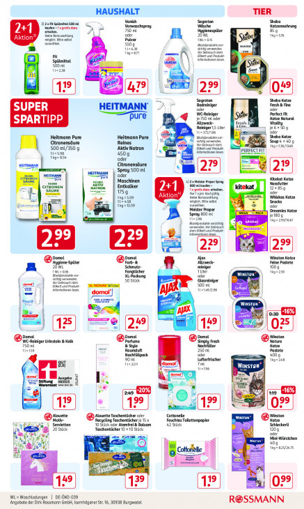 Bitte beachten Sie, dass dieser Text automatisch generiert wird und möglicherweise Fehler enthältALT TIER BAUSH 3) 2x Fit Spülmittel 00 mt Vanish Sagrotan Sheba kaufen =1 xgratis dazu e Vorwaschspray Wäsche Katzennahrung erhalten. SS 750 ml Hygienespüler 859 Keine Barauszahlung oder 20 WL Ikg=576 möglich. Bitte selbst Pulver AWL=015 auswählen 550g Bozidproduktevor- 11262 sthtg verwenden Ahgzarı Vor Gebrauch stets i Fit Etkett und Produkt Spülmittel né An, ROAN Informationen lesen. 500 mL SZ Siebe 112238 | De ie À Sagrotan Sheba Katze Fresh & Fine SUPER HEITMANN oder Badreiniger oder Perfect Fit WC-Reiniger SPARTIPP pure je750 ml oder Katze Natural Allzweck- Eline Fresh Vitality ED iger1,5 Liter je6x50g Ki 1L2372/186 oder Heitmann Pure Heitmann Pure eu Bozidpraduktevar Sheba Katze Citronensäure Reines 4 4 A sing verwenden Soup4 x 40.g Vor Gebrauch stets kg =730/1363 500 ml/350 g Aktiv Natron = > Informationen lesen. Ethett und Produkt PERFECT FIT 112598 4509 Kea rat 1kg= 854 oder & | german Citronensäure Pure HEITMANN® Spray 500 ml HEITMANN oder pure genes pure Maschinen Kitekat Katze REINE AKTIV 4)2x Meister Proper Spray, 800 mi kaufen- Nassfutter CITRONEN Entkalker ‘1x gratis dazu erhalten. 12x859 SÄURE 1759 Nur pro Koufgülig tek] oder Keine Barauszchlung Whiskas Katze En 149550 möglich. Bitte sebst Snacks 1kg=1.09 auswählen a oder Meister Proper Dreamies Katze Spray 800 ml 112286 je180 g Blazkdpradutte vorsichtig FL 1kg=293/1661 verwenden. Var Gebrauch stets Ethett und Produkt- Ki PETAsL info ED 1 Domol Domol Winston Katze Ajax Hygiene-Spüler Farb-& Allzweck- Feine Pastete 20 WL Schmutz- reiniger js 1009 1wL=006 Fangtücher 1Liter f CT Akg= 250 Blozidprodukte vor XL-Packung oder ht verwenden. Vor Gebrauch stets 50 Stück Fe an Glasreiniger | gomor] Etikett und Produkt 500 mL Ne en Informationen lese. 1121497298 Gef el | E domol | | TREE É rt Wins | = EN > 16% | ra “La = en | EN 25 Domol Domol Domol Winston WC-Rei rUrinstein & Kalk Perfume mm © Simply Fresh Nature 750 ml & Style Nachfüller Katze 112159 como Raumduft 250 ml Pastete oder 90 ml Nachfüllpack Lufterfrischer = 4009 1kg= 248 85 1t=22n |domof) 7m WINST: & 112796 to mor | “|| damor] us = + Aus Cr A ki Stiftung 082025 250247 * Warentest waste vet ve) ÿ 416% 5 & 4 en © 99 es 2 99 Alouette Alouette Taschentücher oder Cottonelle [Te Winston Motiv- Recycling Taschentücher je 15 x Feuchtes Toilettenpapier Katze Kr TE Servietten 10 Stück oder Atemfrei & Balsam 42 Stück Schleckerli Taschentücher 10 x 10 Stück 1209 & 20 Stück oder Fer Mini-Würstchen É x À En Wi B en 409 A Ikg=825/2475 5 har Cottofielle 6 El er En Eu 4 ie vie Dre Ex Äh PA Ki A: Den, WL=Woschlodungen | DE-ÖKO-039 ‚Angebote der Dirk Rossmann GmbH, Isernhägener Str. 16, 30938 Burgwedel R@SSMANN