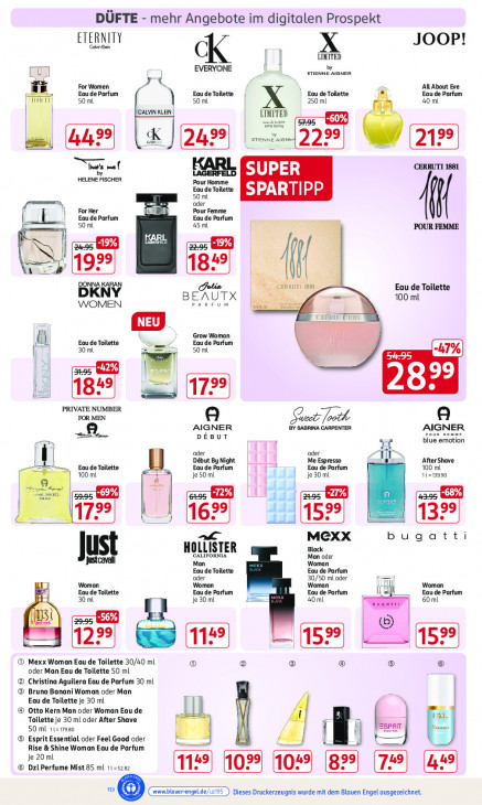 Bitte beachten Sie, dass dieser Text automatisch generiert wird und möglicherweise Fehler enthältDÜFTE - mehr Angebote im digitalen Prospekt ETERNITY Soinklen JOOP! LIMITED X K Lo EVERYONE ETIENNE AIGNER by I For Women Eau de Parfum Eau de Toilette Eau de Toilette All About Eve Eau de Parfum TENT 50 ml 50 ml 250 ml 40 ml CALVIN KLEIN ETIENNE AIGNE: es nafs mel LAGERFELD SUPER CERRUTI 1881 HELENE FISCHER Pour Homme Eau de Toilette SPARTIPP 50 ml For Her oder Pour Femme Eau de Parfum Eau de Parfum Le 50 ml 45 ml f POUR FEMME % 29 me I 19 DONNA KARAN UTI 1881. Eau de Toilette DKNY BERUTX 100 ml WOMEN PARFUM EE Tr PTR Grow Woman Eau de Toilette Eau de Parfum | \ 30 ml 50 ml Dl 99 | 3 PRIVATE NUMBER FORMEN a AIGNER BV SABRINA CARPENTER Saut frothe AIGNER mu. DEBUT Dun noune blue emotion oder oder fl Début By Night SN Me Espresso After Shave ==, Eau de Toilette | 100ml Eau de Parfum Eau de Parfum 100 ml 11213990 je 50 ml je 30 ml -69%) Ad : 5295 2-95 2355 175? 159 132 MEXX bugatti ust HOLLISTER CALIFORNIA Black Man oder Justcavall Man Woman Eau de Toilette Eau de Parfum oder 30/50 ml oder Woman Eau de Toilette Woman Eau de Parfum Woman Eau de Parfum Woman Eau de Parfum 30 ml je 30 ml ms 40 mL 60 mL T b} es (EE ss © Mexx Woman Eau de Toilette 30/40 ml ® ® ® ® oder Man Eau de Toilette 50 ml @ Christina Aguilera Eau de Parfum 30 ml @ Bruno Banani Woman oder Man a Eau de Toilette je 30 ml @ Otto Kern Man oder Woman Eau de ] Ti Toilette je 30 ml oder After Shave 50 ml 11= 17320 A | 1 | | R © Esprit Essential oder Feel Good oder Rise & Shine Woman Eau de Parfum k je 20 ml © Dzl Perfume Mist 85 ml 11-5282 qe) 10% 10” 829) | 7e) (4 = © Dieses Druckerzeugnis wurde mit dem Blauen Engel ausgezeichnet.